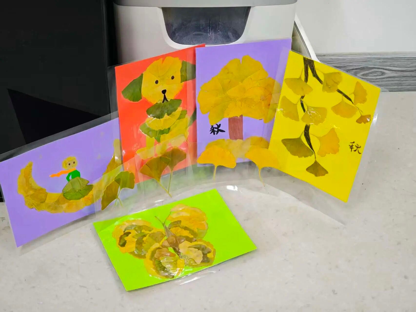 亲手制作银杏热缩片、银杏创意画、银杏果多肉、银杏书签、银杏彩绘等手工,把秋日金黄“握”在手里。